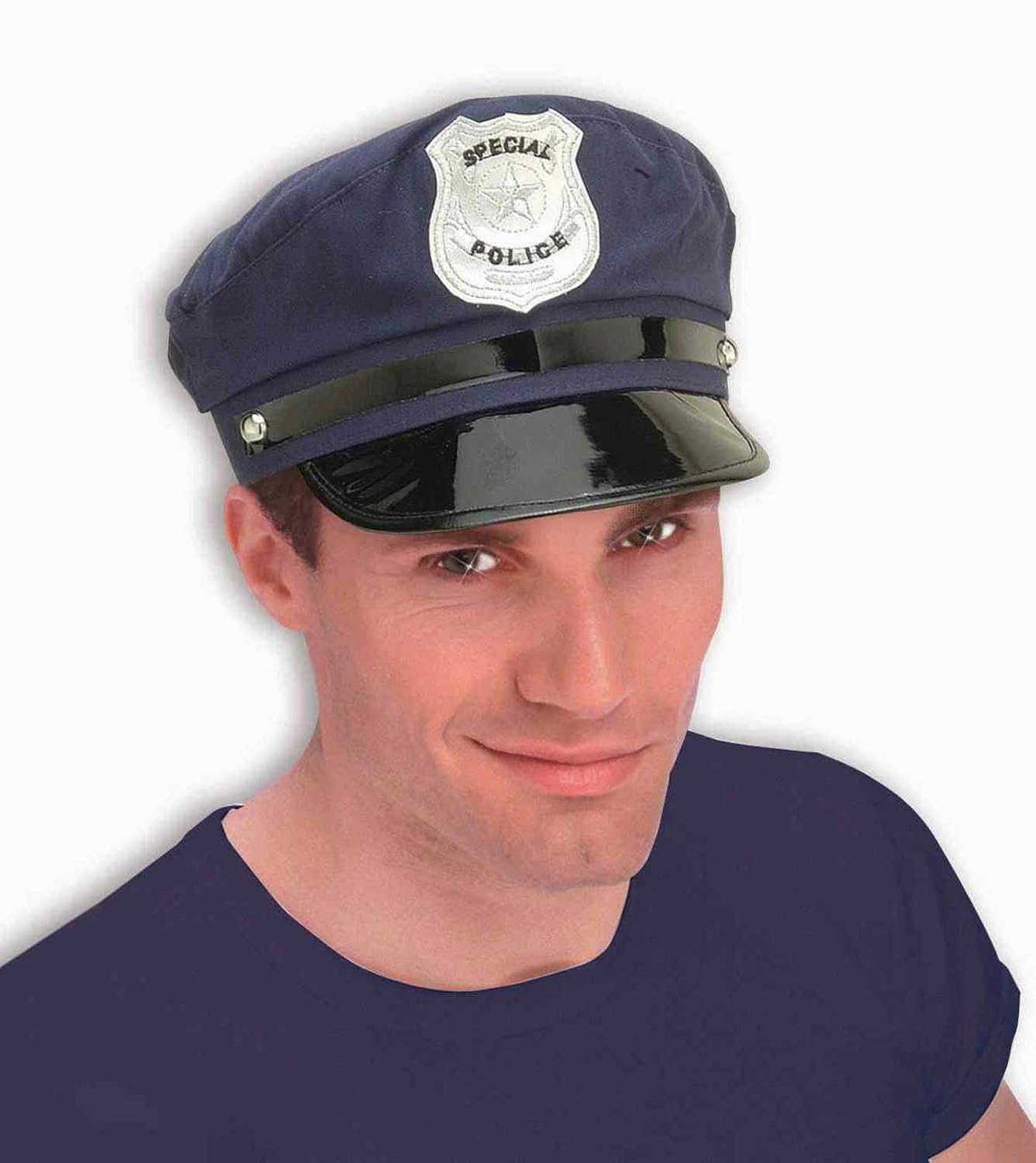 Blue cotton police cap has an attached badge. Great costume accessory now at Tin City Magic.