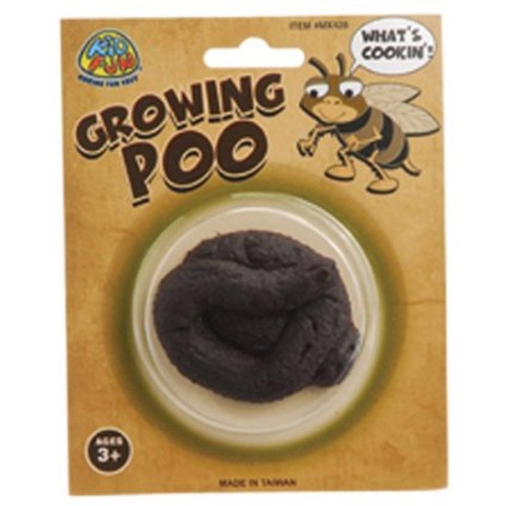 When this poop is soaked in water it grows to 600% of it's original size! As the poop grows it turns a lighter color. At full size, the poop is a dark, repulsive yellow color. When you let it dry out, the poop will shrink down to its original size and color. Use it over and over again!